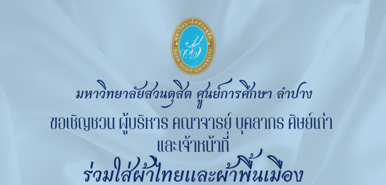 ขอเชิญชวนผู้บริหาร คณาจารย์ บุคคลกร ศิษย์เก่า และเจ้าหน้าที่ ร่วมใส่ผ้าไทยและผ้าพื้นเมืองในกิจกรรม