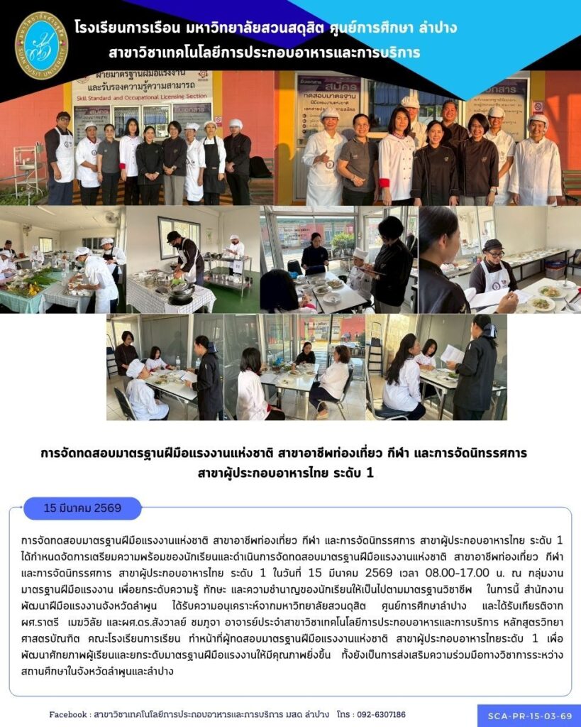 การจัดทดสอบมาตรฐานฝีมือแรงงานแห่งชาติ สาขาอาชีพท่องเที่ยว กีฬา และการจัดนิทรรศการสาขาผู้ประกอบอาหารไทยระดับ 1