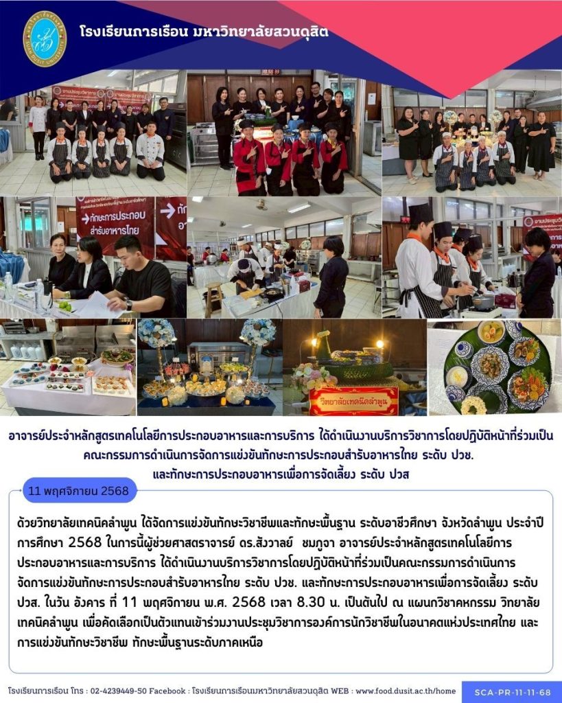 การจัดแข่งขันทักษะวิชาชีพสำหรับอาหารไทยระดับ ปวช. ปี 2568 วิทยาลัยเทคนิคลำพูน