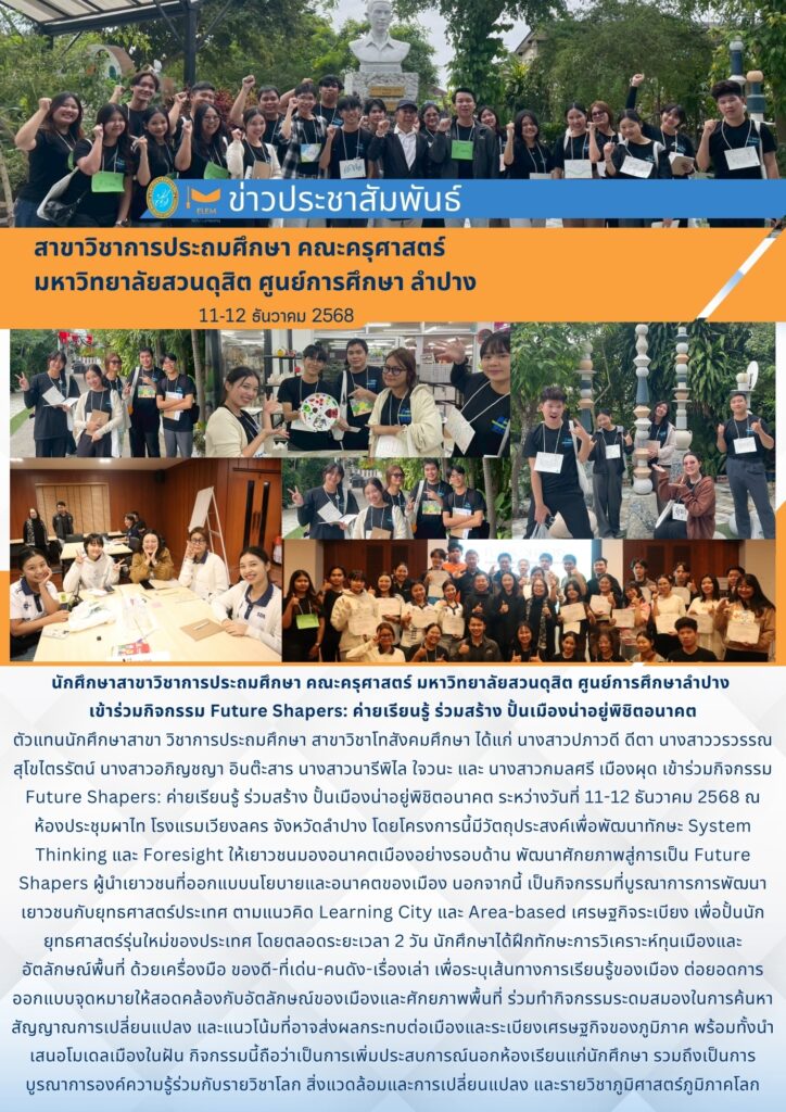 กิจกรรม Future Shapers:ค่ายเรียนรู้ ร่วมสร้าง ปั้นเมืองน่าอยู่พิชิตอนาคต
