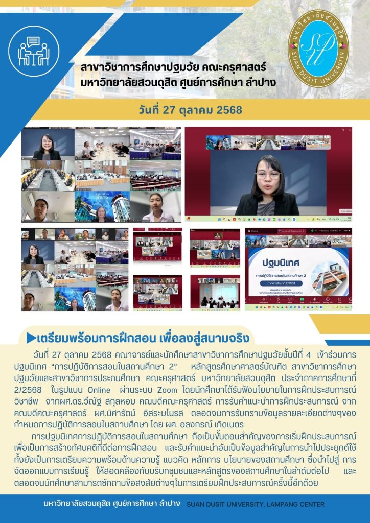 เตรียมพร้อมการฝึกสอนเพื่อลงสนามริง สาขาวิชาปฐมวัย คณะครุศาตร์ มหาวิทยาลัยสวนดุสิต ศูนย์การศึกษาลำปาง