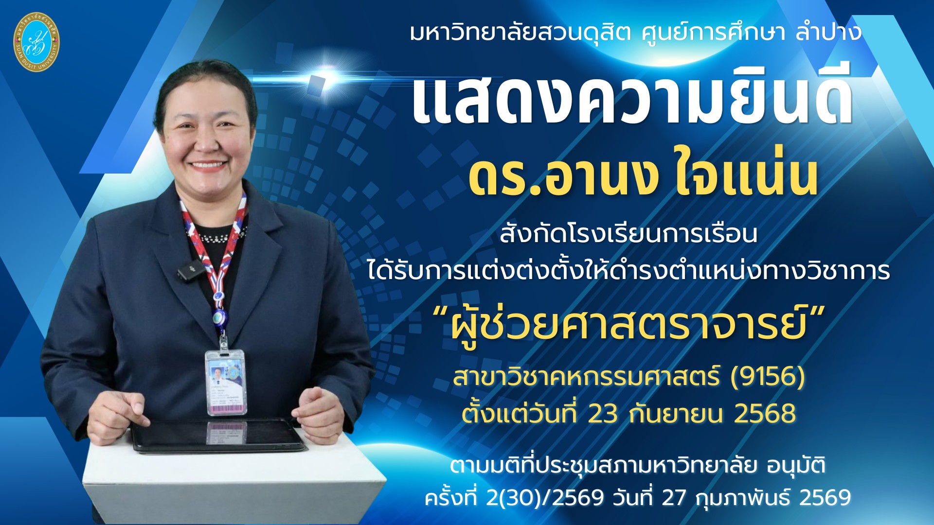 ✨ มหาวิทยาลัยสวนดุสิต ศูนย์การศึกษา ลำปาง✨ ขอแสดงความยินดีกับ ดร.อานง ใจแน่น