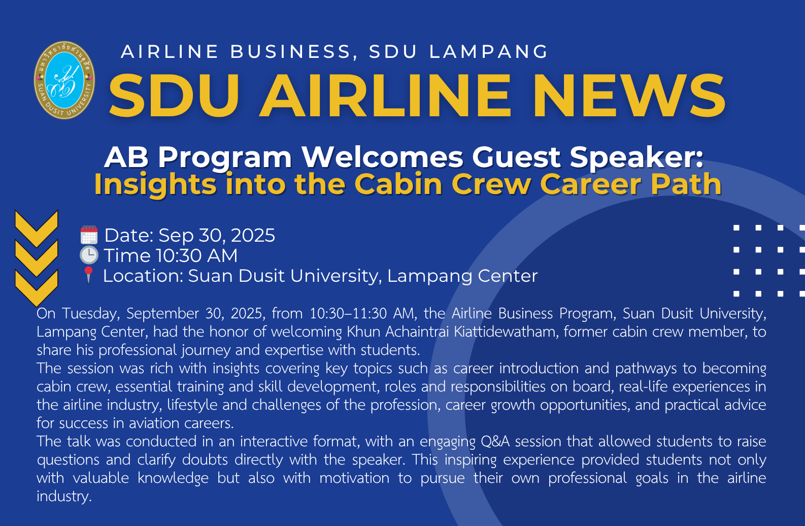AB Program Welcome Guest Spacker: Insight into the Cabain Crew Career Path