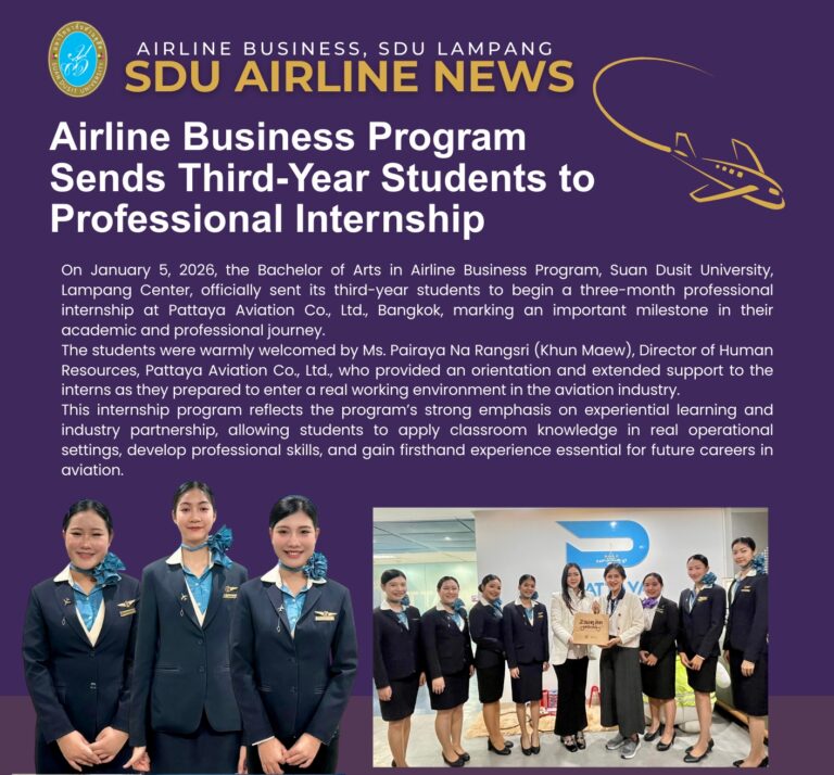 ข่าวสารประชาสัมพันธ์ Airline Business Program Sends Third-Year Students to Professional Internship5 ม.ค. 202619 ม.ค. 2026